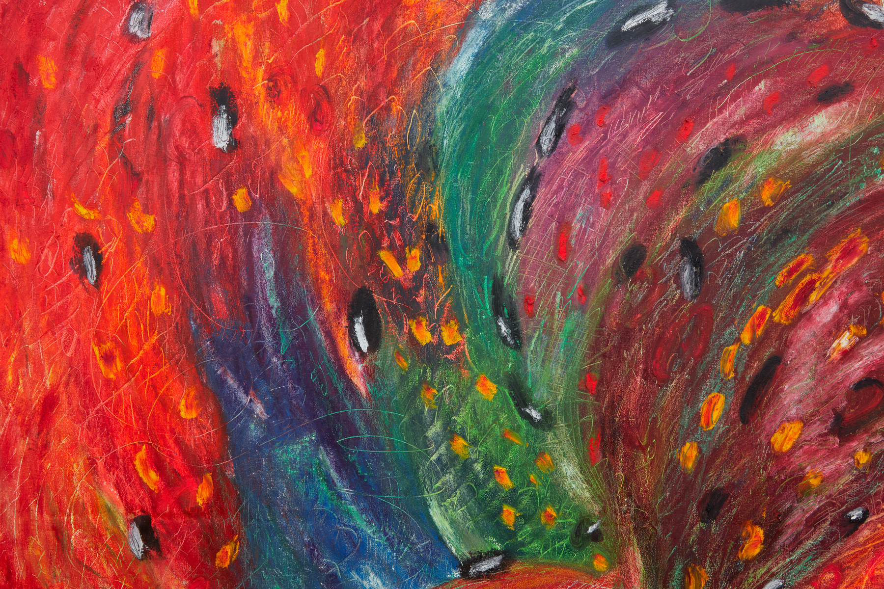 Oil and oil stick on canvas with bamboo and branch